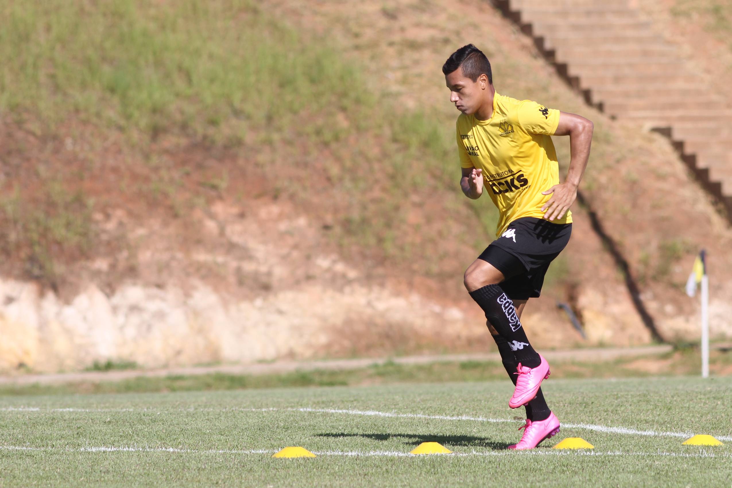 Legenda: Élvis durante treino do Criciúma na manhã deste sábado (23/01), no Centro de Treinamento, no bairro Cristo Redentor