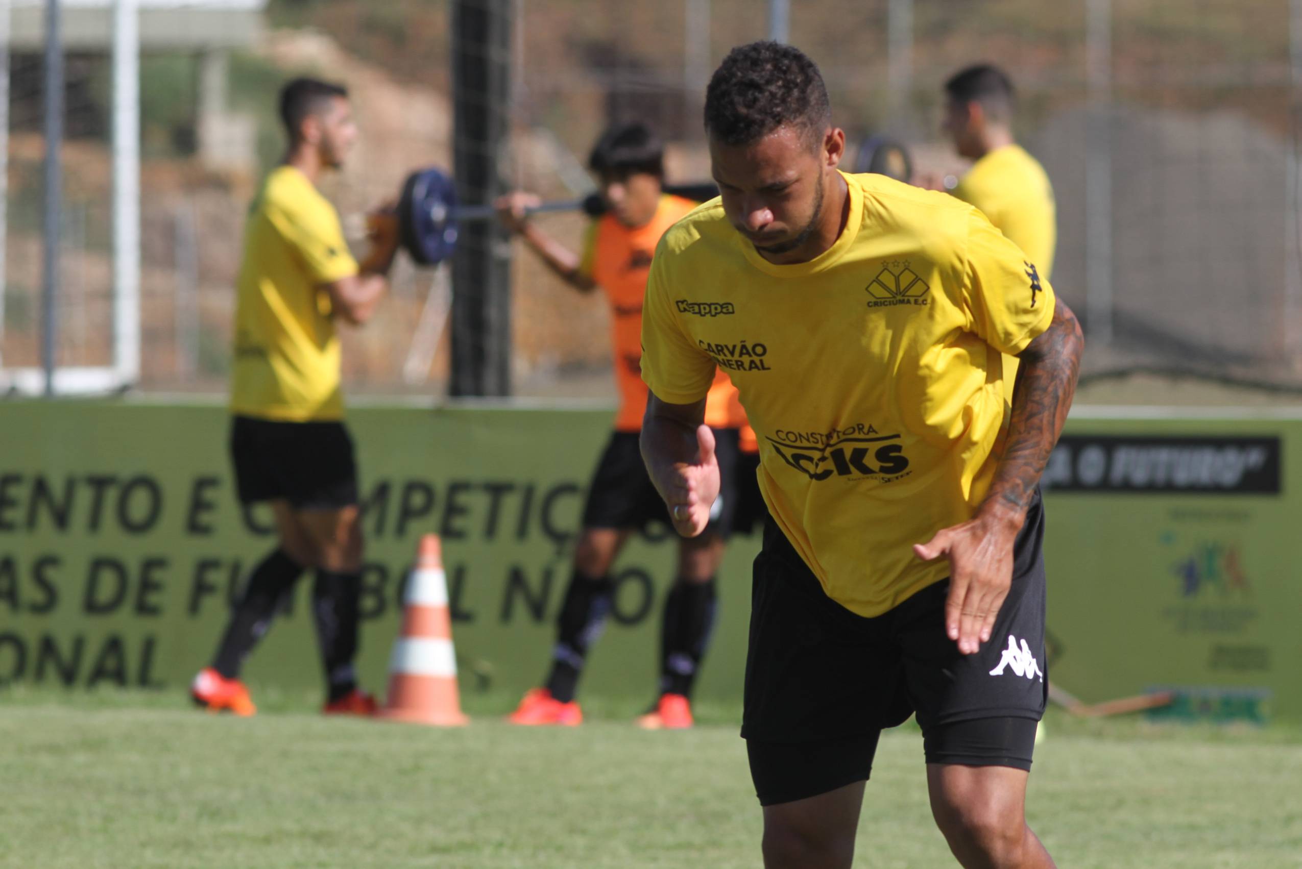 Legenda: Barreto durante treino do Criciúma na manhã deste sábado (23/01), no Centro de Treinamento, no bairro Cristo Redentor
