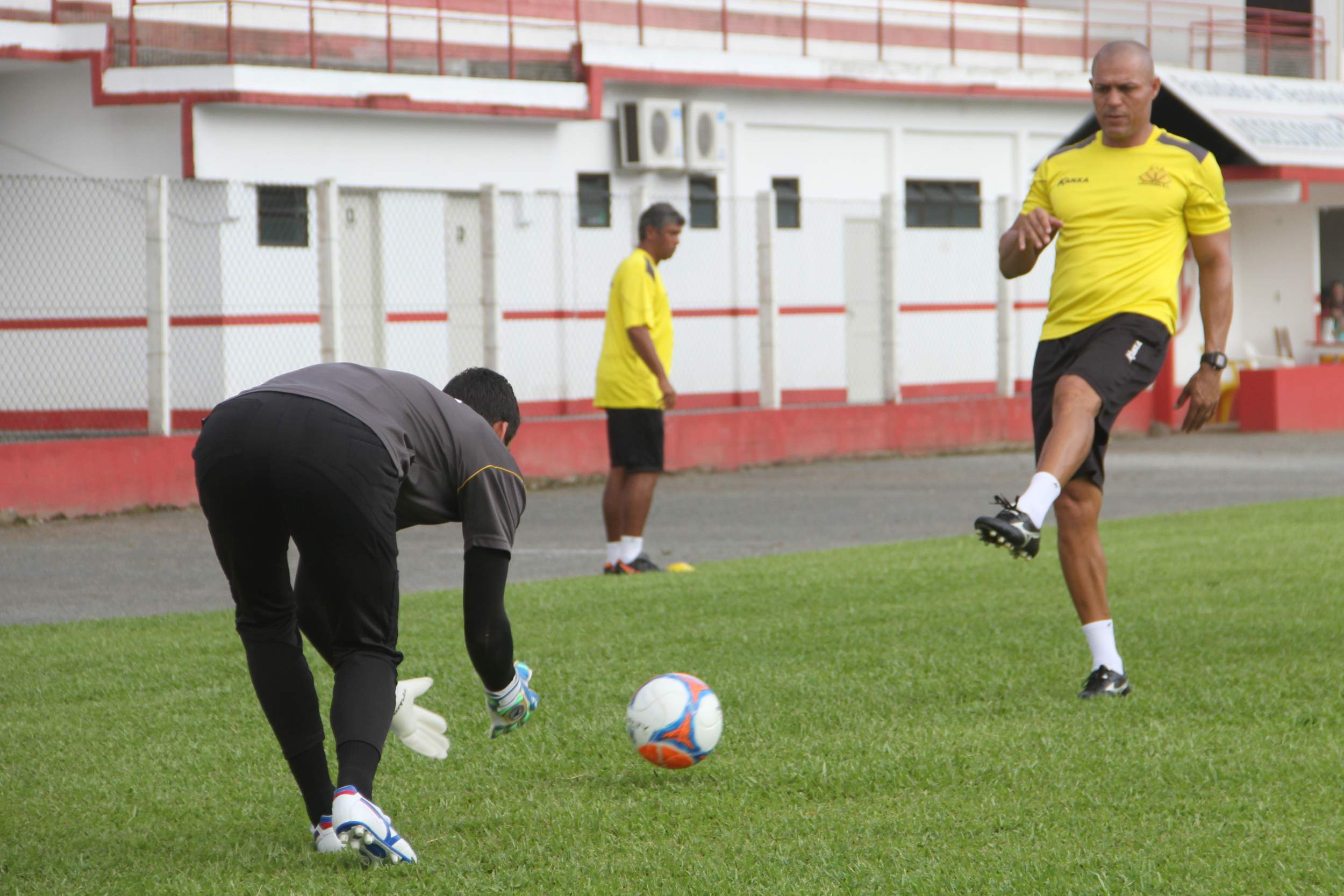 Legenda: Preparador de goleiros Bira durante treino do Criciúma no estádio do América, em Joinville, na manhã deste sábado (25/01)