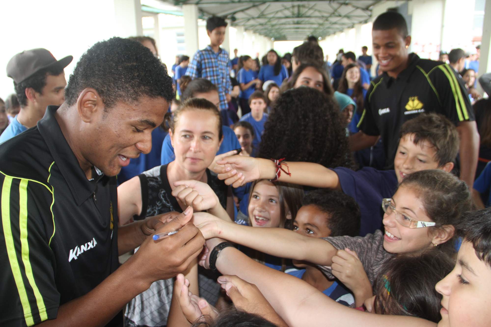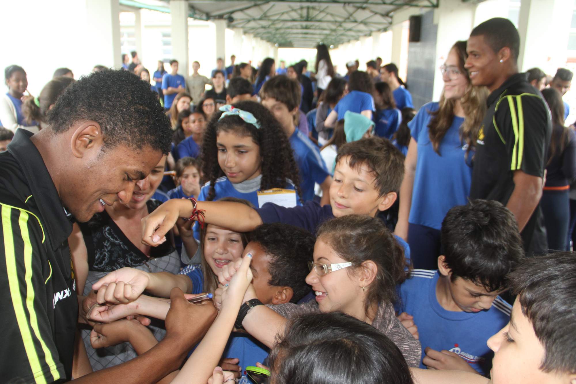 A dupla de atletas discursou para os atletas sobre a data e deram atenção as centenas de crianças no local. Com carinho, os atletas tiraram fotos com as crianças, além de distribuir autógrafos.